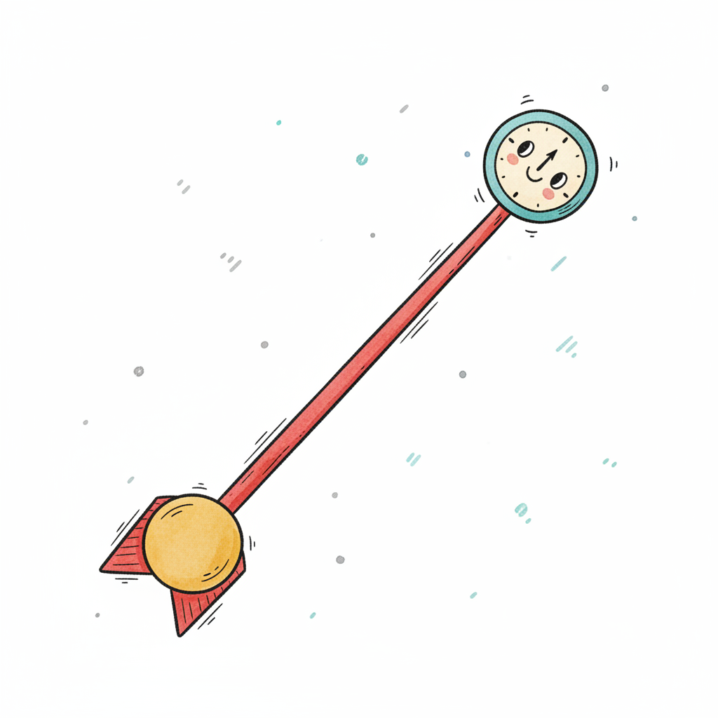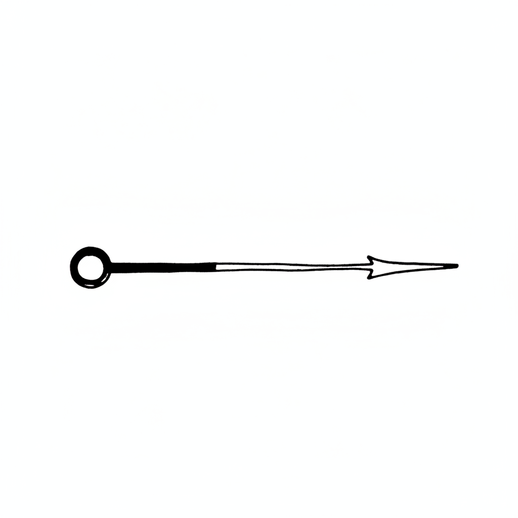 Handgezeichneter schwarzer Pfeil mit Ring am Anfang, zeigt nach rechts auf weißem Hintergrund.
