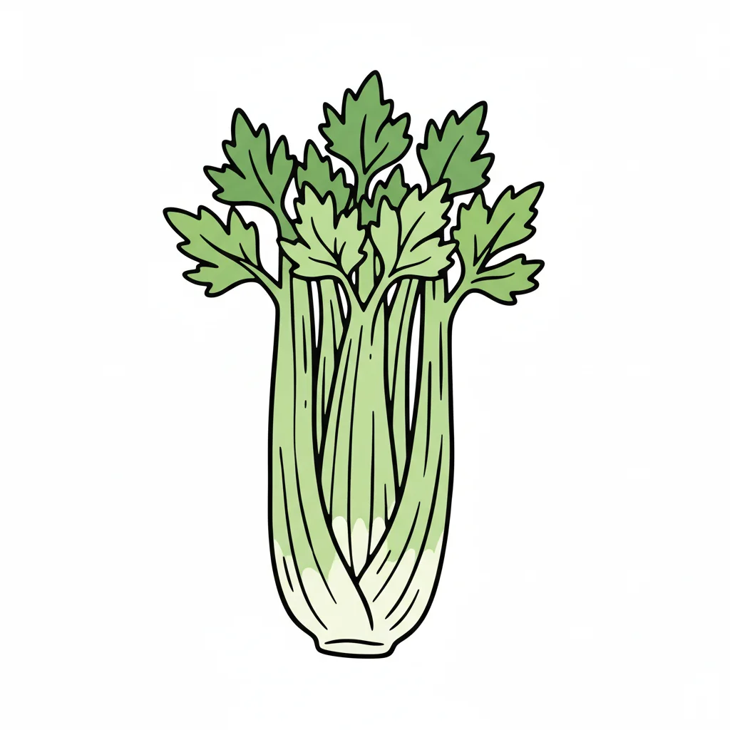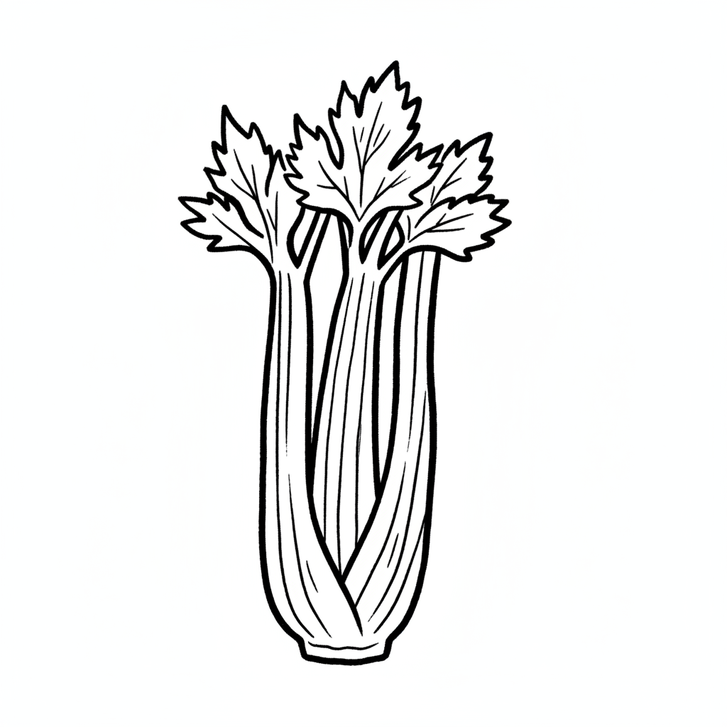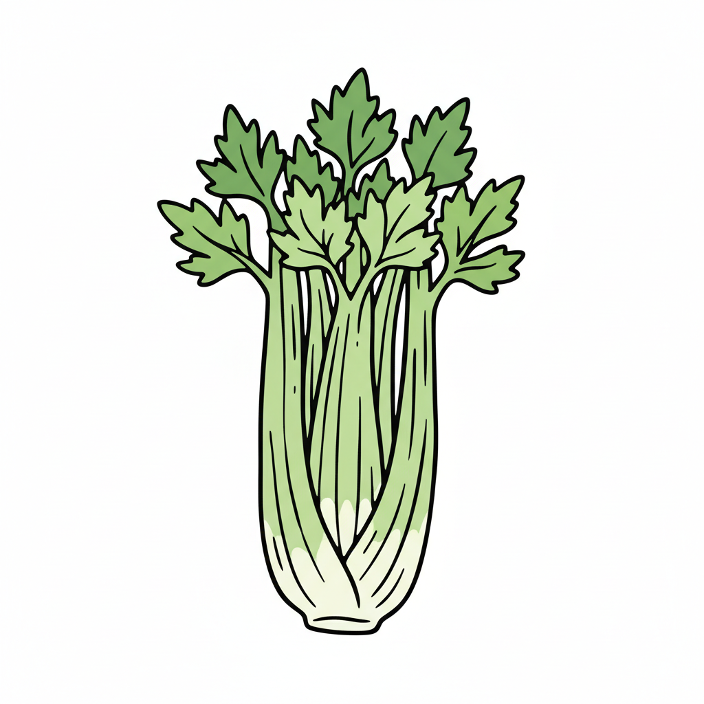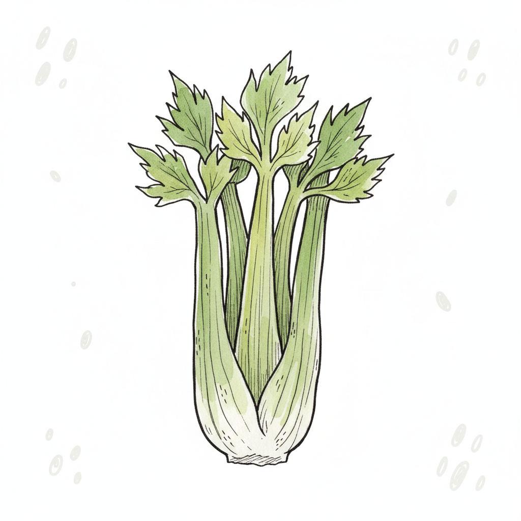 Ein handgezeichneter Sellerie mit grünen Blättern.
