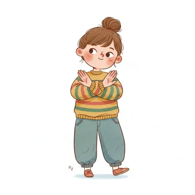 Cartoonmädchen mit verschränkten Armen und trotzigem Blick, das Ablehnung signalisiert.