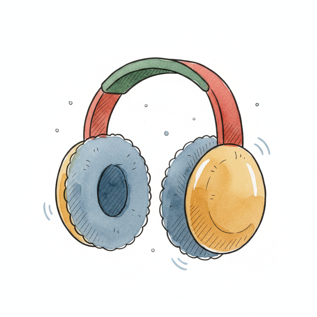 Warme, flauschige Ohrenschützer in Aquarellfarben, ideal für den Winter.