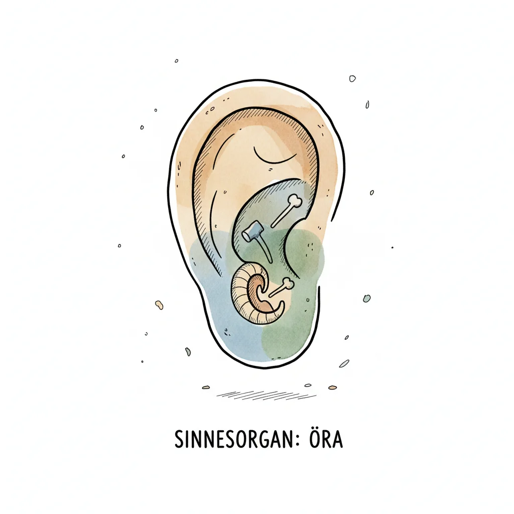 Stylisierte Illustration eines Ohrs mit Hammer, Amboss, Steigbügel und Schnecke.