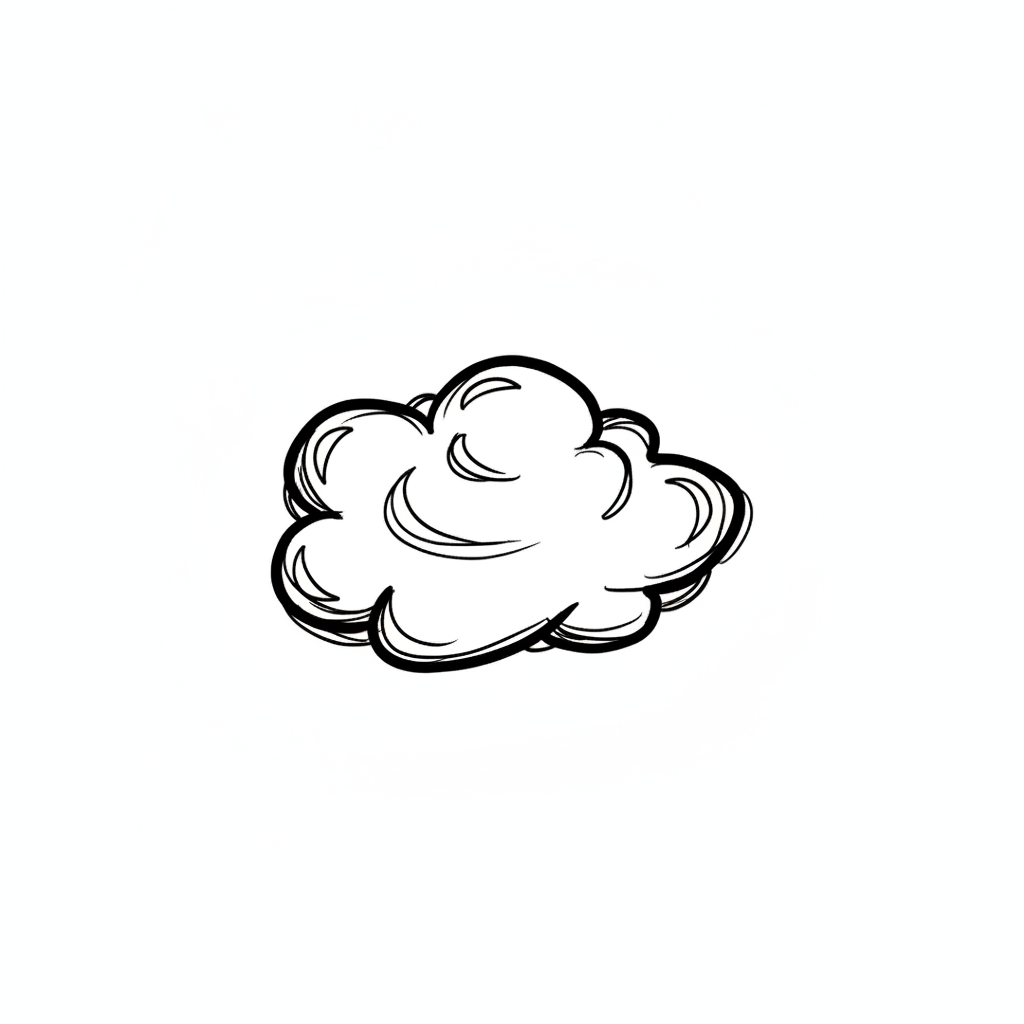 Eine handgezeichnete, skizzierte Wolke in Schwarz-Weiß auf weißem Hintergrund.