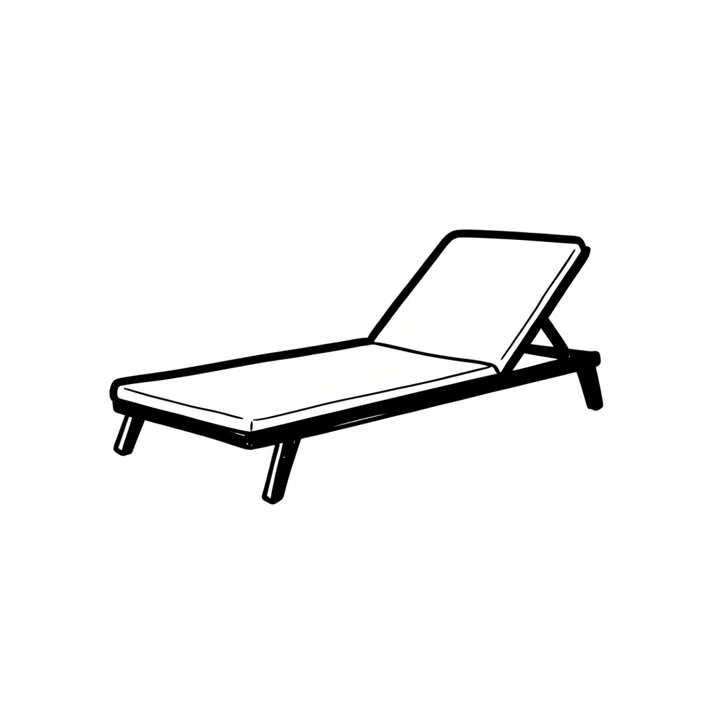 Schwarz-weiße Skizze einer Sonnenliege mit verstellbarer Rückenlehne.