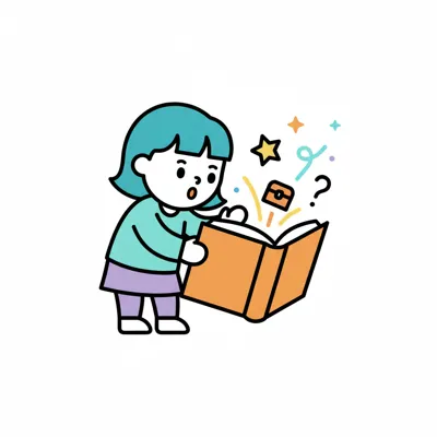 Ein fröhlicher Junge öffnet eine funkelnde Schatztruhe mit einem Fragezeichen darüber.