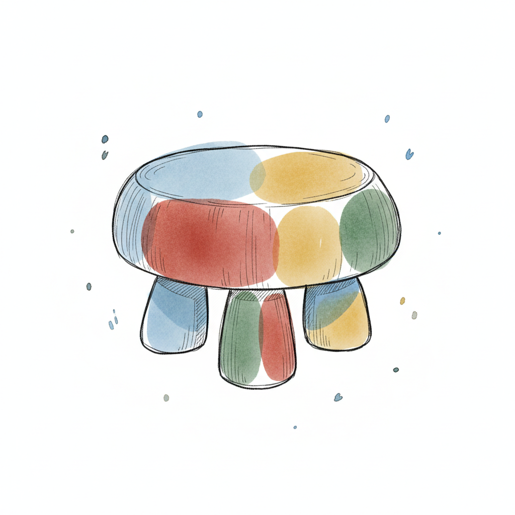 Bunte, transparente Tisch- oder Hocker-Illustration im Aquarellstil mit runder Form.