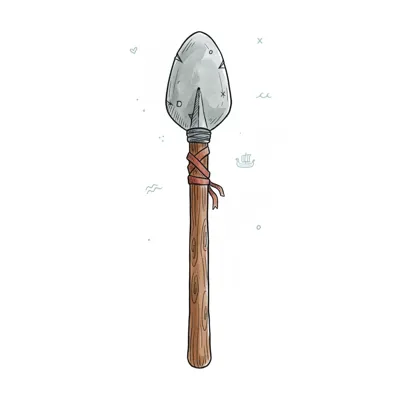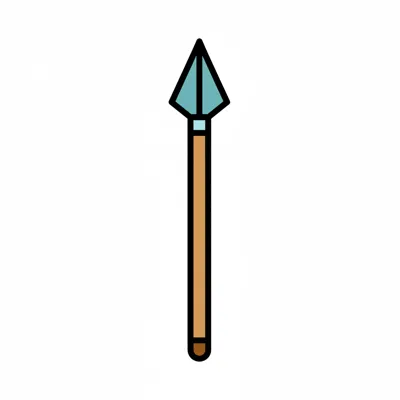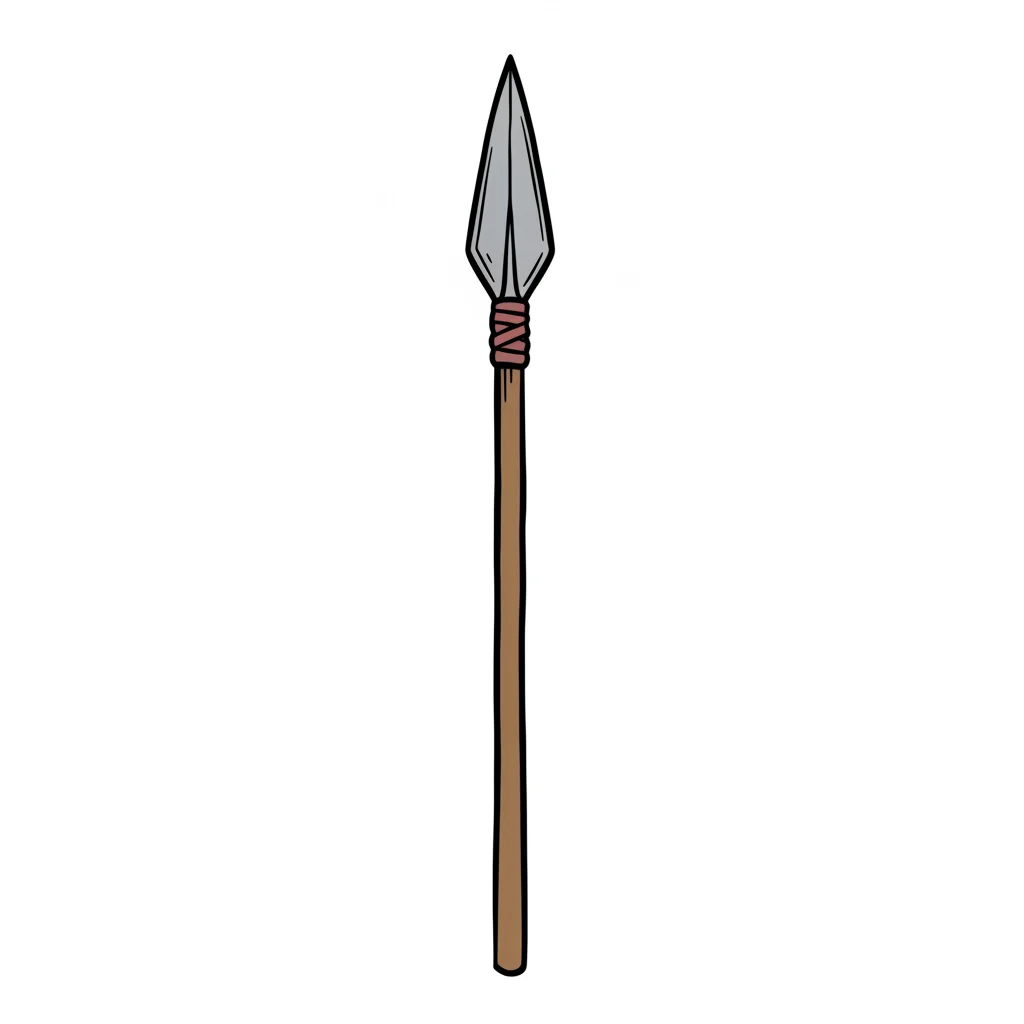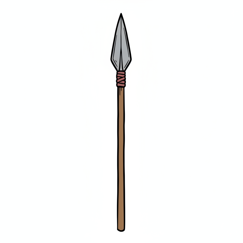 Eine einfache, gezeichnete Speer mit grauer Spitze und braunem Schaft auf weißem Hintergrund.