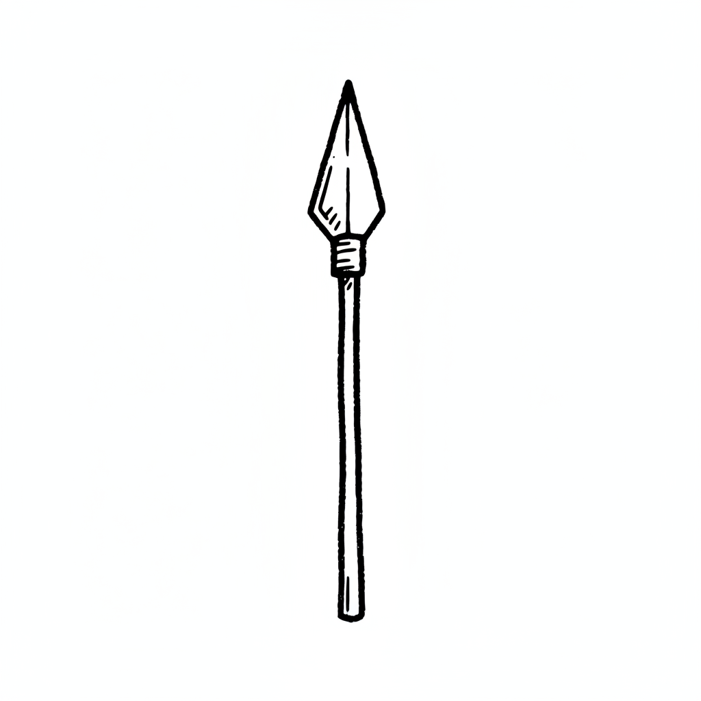 Schwarz-weiße Skizze eines Speers mit spitzer Klinge und langem Schaft.