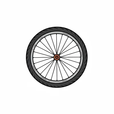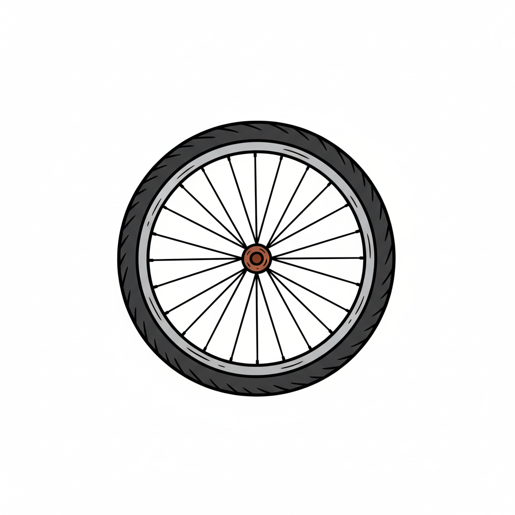 Ein einfaches, skizziertes Rad mit Speichen und Gummi-Profil.