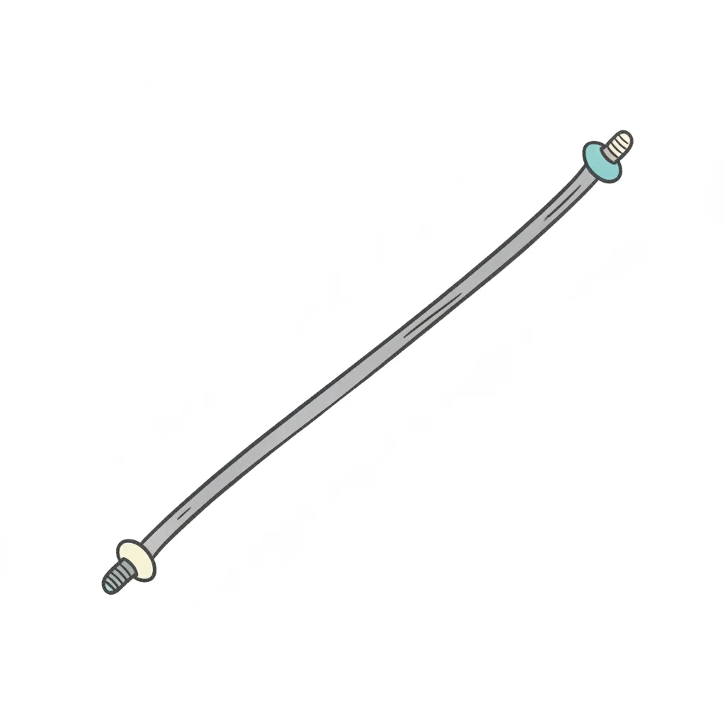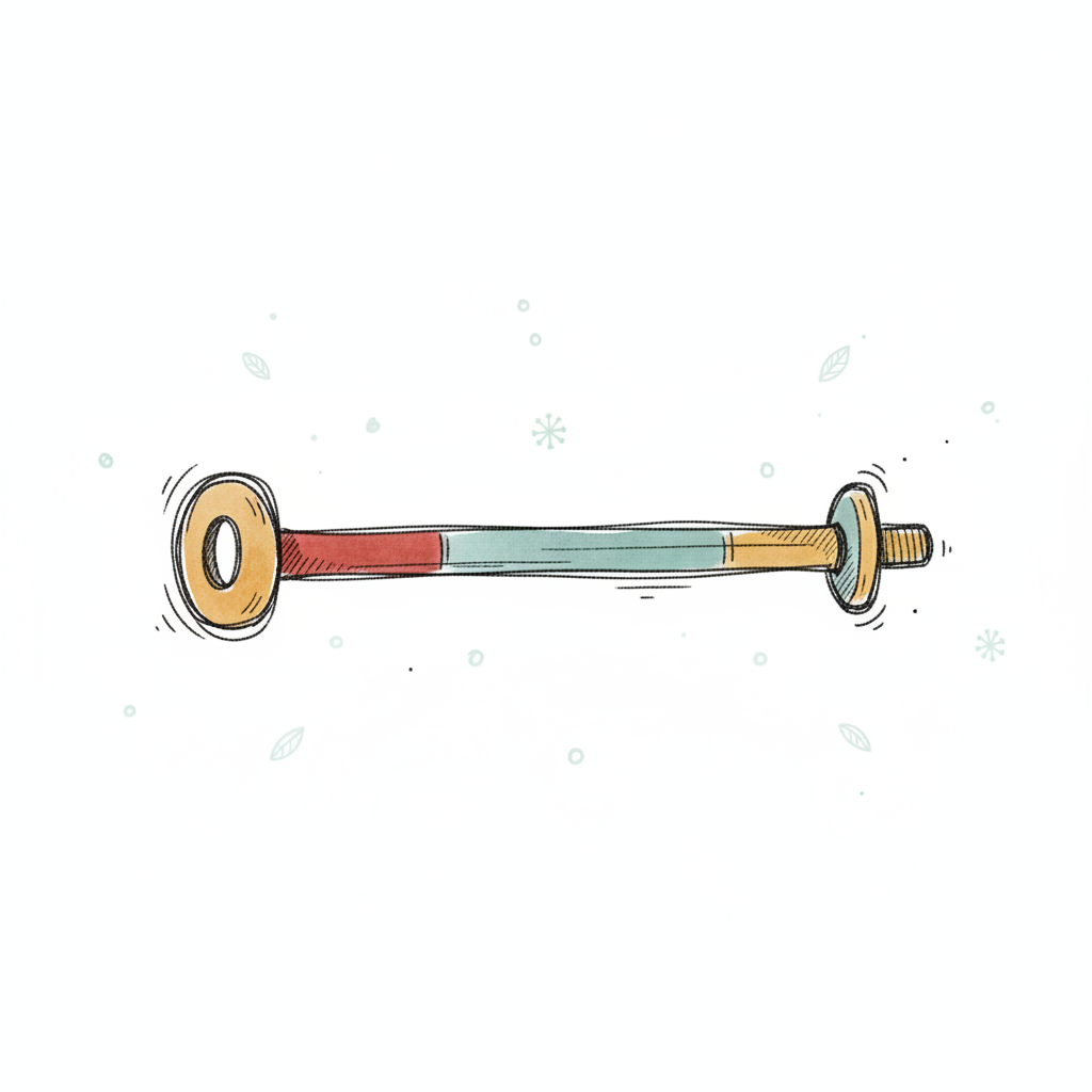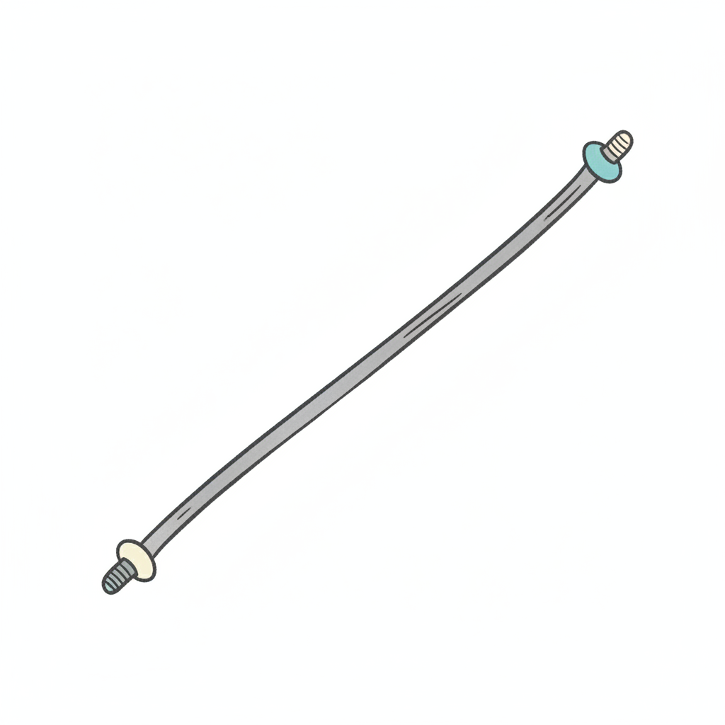 Cartoon-Zeichnung einer grauen Gewindestange mit farbigen Unterlegscheiben an den Enden.