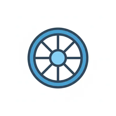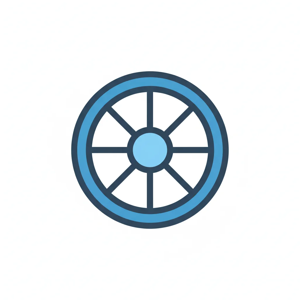 Ein stilisiertes blaues Rad-Icon mit Speichen auf weißem Hintergrund.