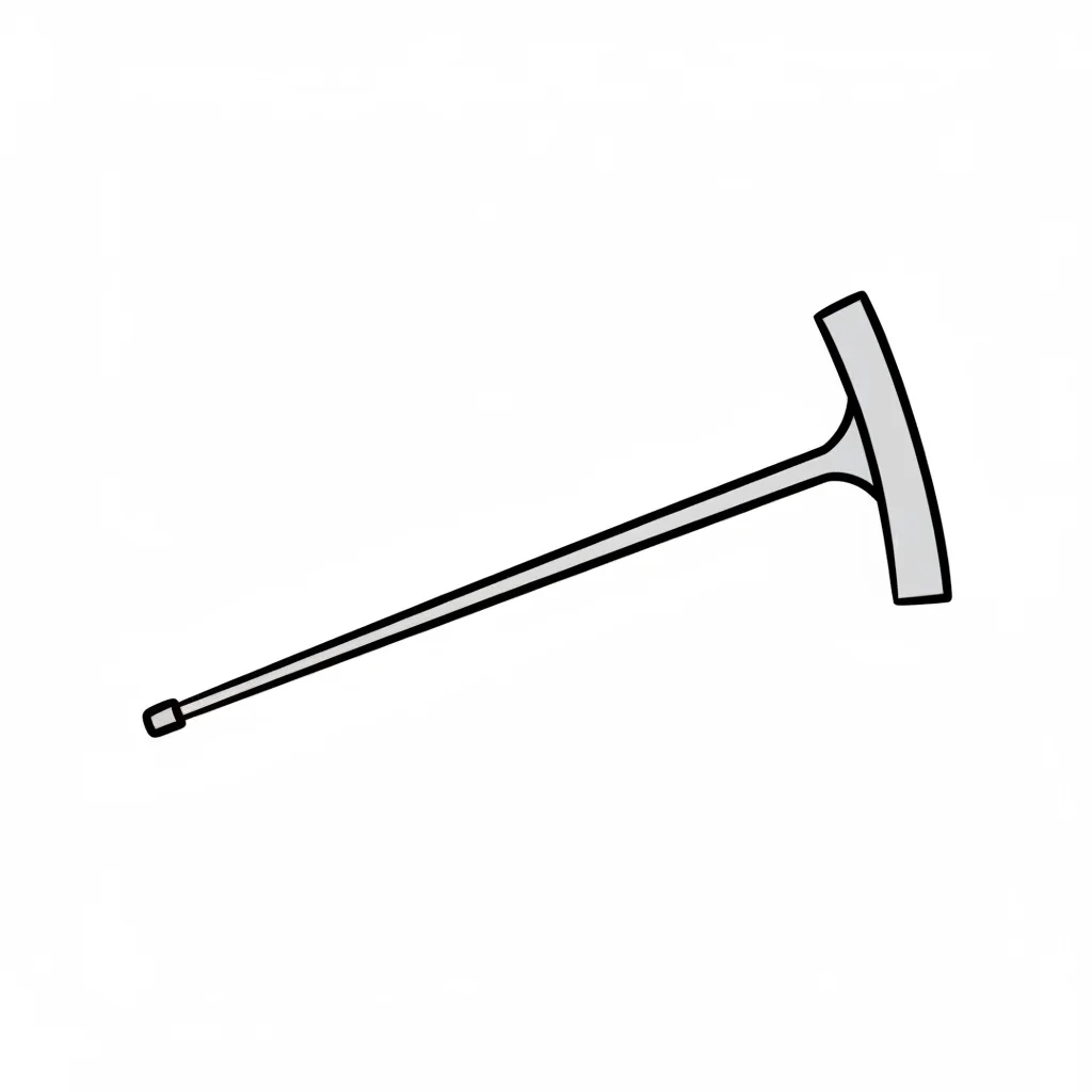 Eine einfache, stilisierte Zeichnung eines T-förmigen Werkzeugs mit langem Schaft und quadratischer Spitze.