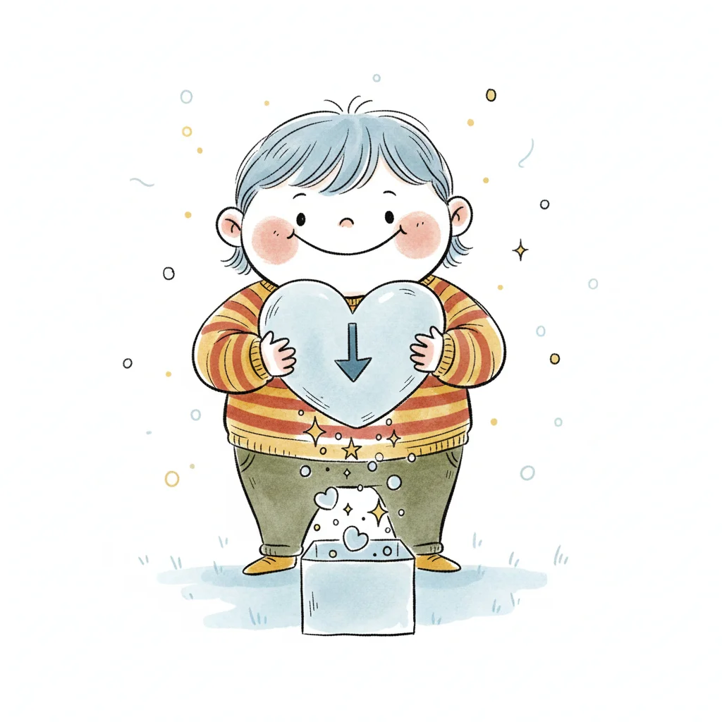 Niedliche, kindgerecht illustrierte Szene mit einem Kind oder einer Person als Hauptfigur, vor rein weißem Hintergrund, im frech-nordischen Aquarell-Skizzenstil. Klare, leicht wackelige Tuschekonturen, sichtbare Pinsel- und Strichtextur, dezente Schraffuren, weiche handgemalte Farbflächen in gedeckten Farben. Einfache, runde Formen. Keine harten Schatten, sondern sanfte, transparente Aquarellschichten. Leicht raue, handgezeichnete Linien statt glatter Vektorkanten. Subtile, vereinzelte Kritzelpunkte oder kleine Details im Hintergrund (wie Pünktchen oder feine Striche), aber keine echte Umgebung oder Landschaft. Die Figur ist mittig zentriert. Insgesamt charmant, humorvoll, warm und handgemacht wirkend. WICHTIG: Das Bild darf ABSOLUT KEINEN TEXT, KEINE BUCHSTABEN und KEINE ZAHLEN enthalten.