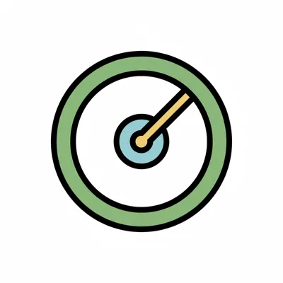 Minimalistisches Icon eines Messgeräts oder Tachos mit grünem Kreis und gelbem Zeiger.
