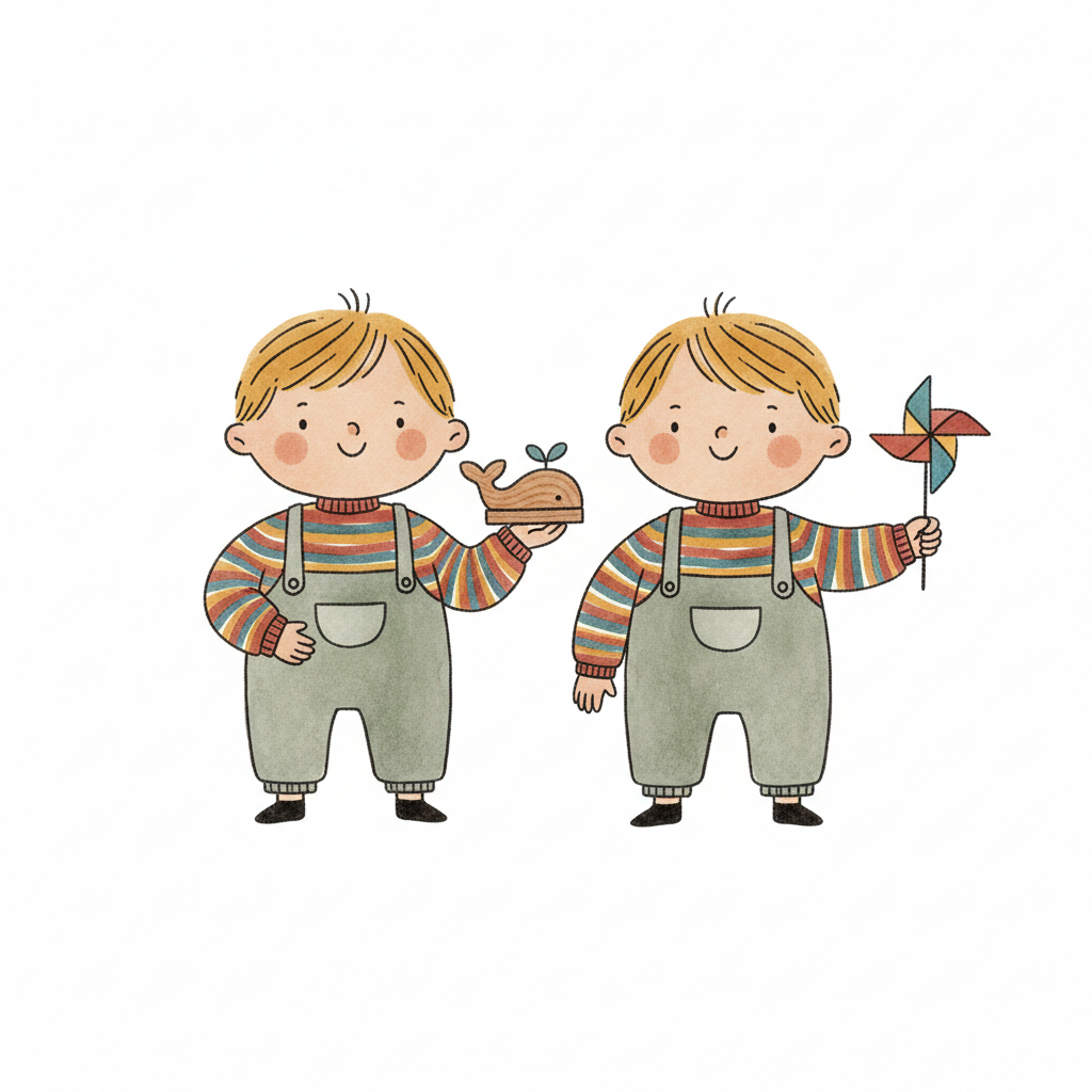 zwillinge kinder spielzeug illustration nordic-bilderbuch-stil