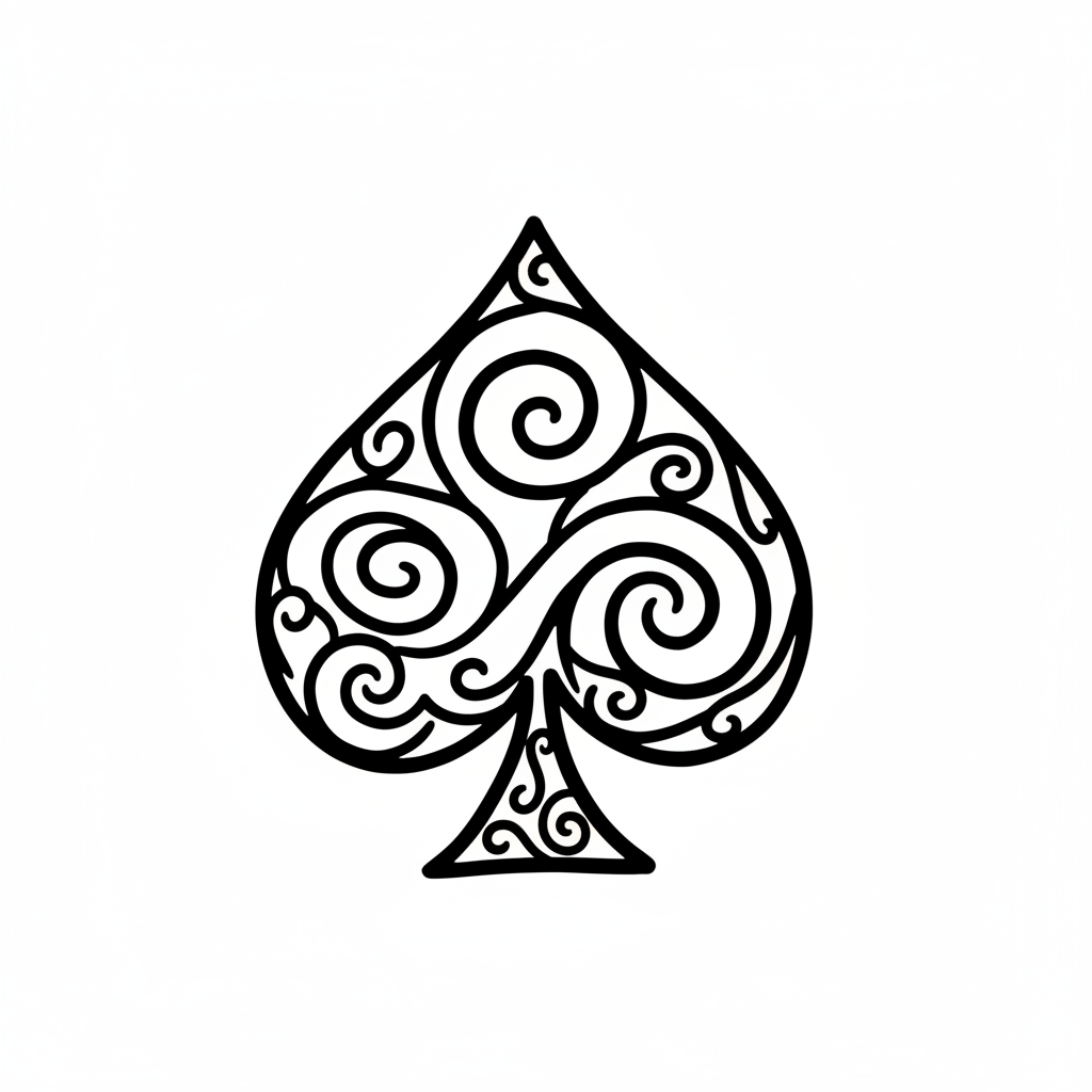 Ein stilisiertes Kreuzblatt mit dekorativen Spiralen.