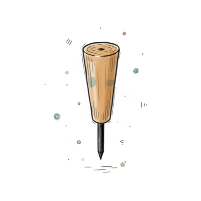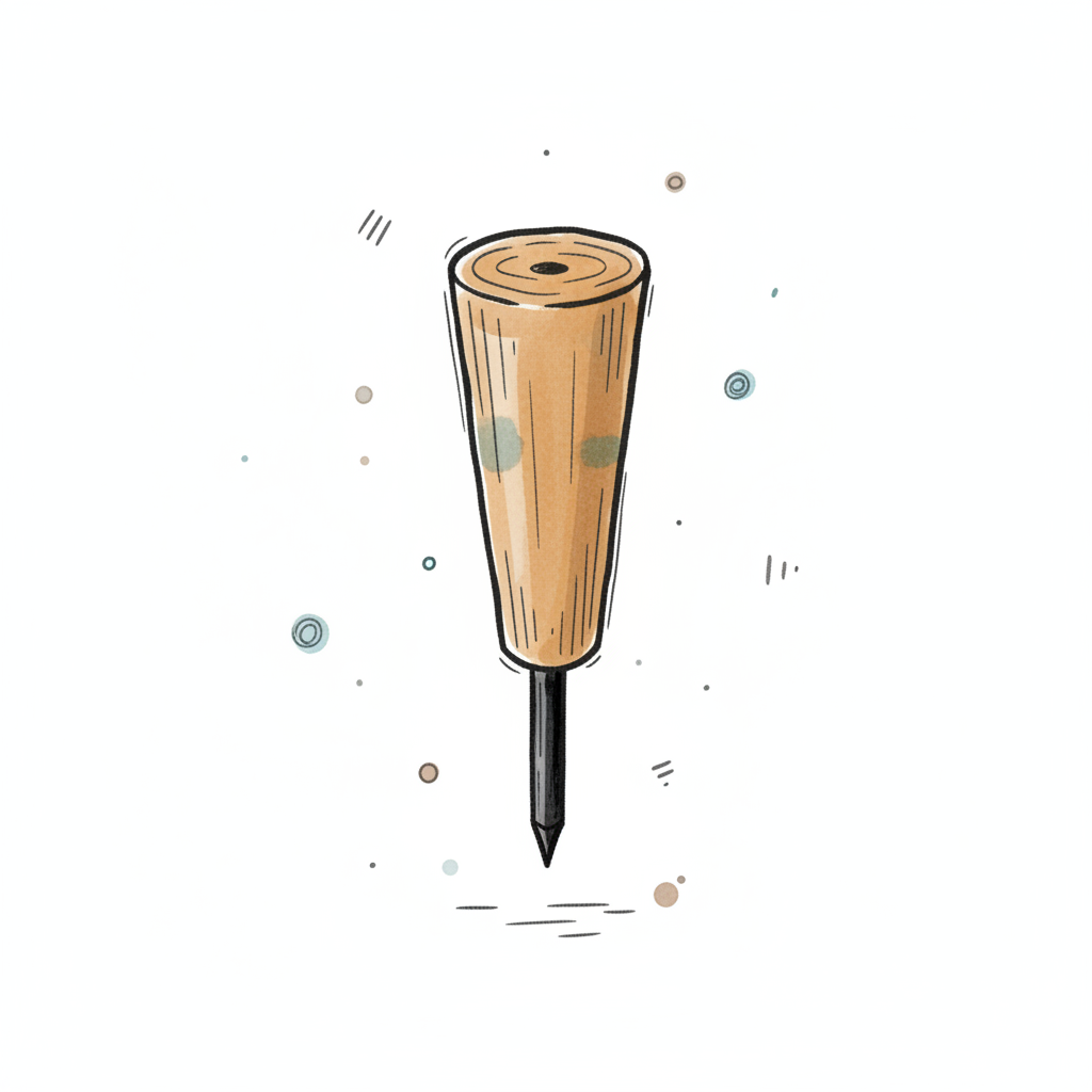 Handgezeichneter Holzpfriem mit spitzer Metallspitze auf weißem Hintergrund im Skizzenstil.