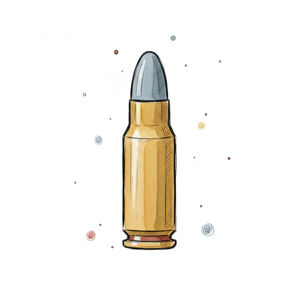 Gezeichnete Patrone mit goldener Hülse und silberner Spitze auf weißem Hintergrund.