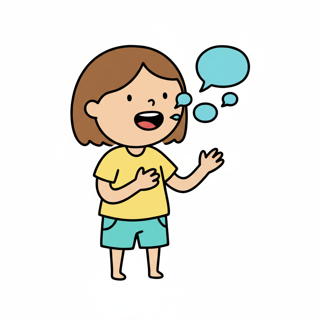 Ein Junge spricht fröhlich mit einer Sprechblase.