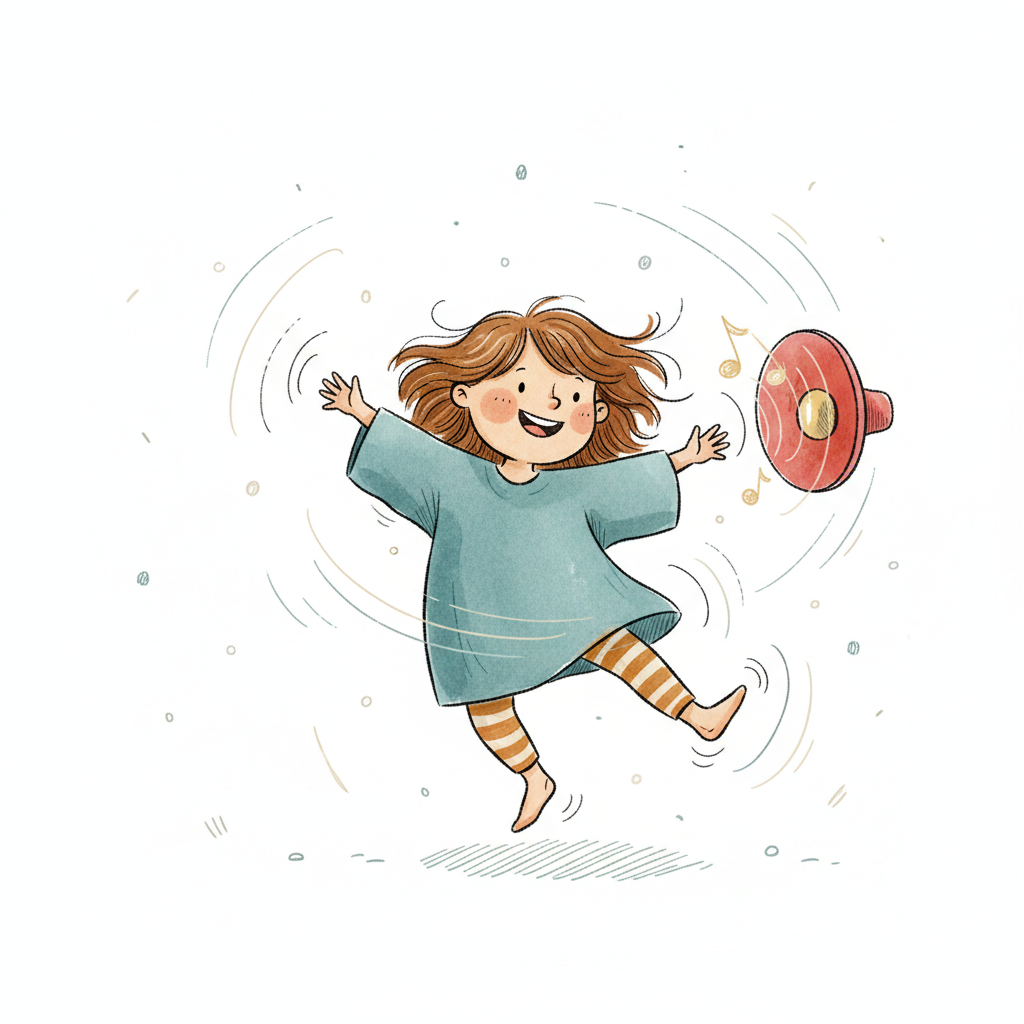 Niedliche, kindgerecht illustrierte Szene mit einem Kind oder einer Person als Hauptfigur, vor rein weißem Hintergrund, im frech-nordischen Aquarell-Skizzenstil. Klare, leicht wackelige Tuschekonturen, sichtbare Pinsel- und Strichtextur, dezente Schraffuren, weiche handgemalte Farbflächen in gedeckten Farben. Einfache, runde Formen. Keine harten Schatten, sondern sanfte, transparente Aquarellschichten. Leicht raue, handgezeichnete Linien statt glatter Vektorkanten. Subtile, vereinzelte Kritzelpunkte oder kleine Details im Hintergrund (wie Pünktchen oder feine Striche), aber keine echte Umgebung oder Landschaft. Die Figur ist mittig zentriert. Insgesamt charmant, humorvoll, warm und handgemacht wirkend. WICHTIG: Das Bild darf ABSOLUT KEINEN TEXT, KEINE BUCHSTABEN und KEINE ZAHLEN enthalten.