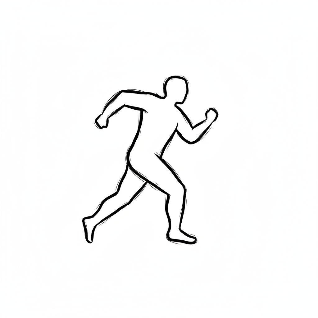 Schwarz-weiße Strichzeichnung einer rennenden oder sprintenden menschlichen Figur.