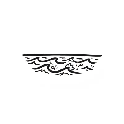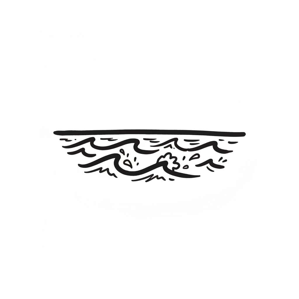 Schwarz-weiße, stilisierte Zeichnung von Wellen und spritzendem Wasser.