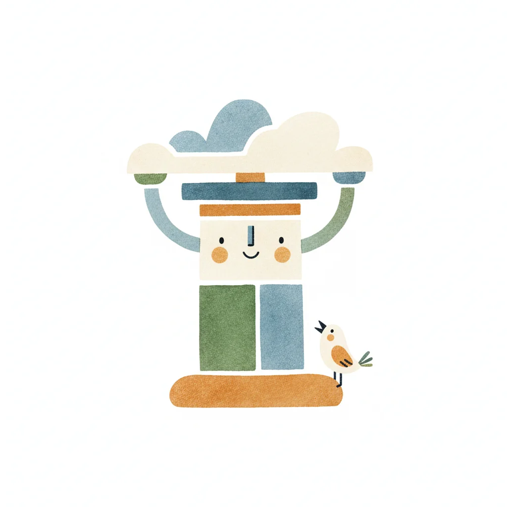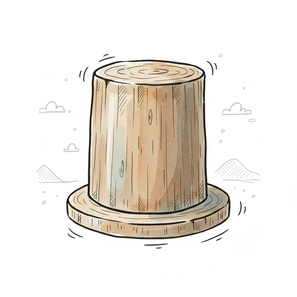 Stilisierter Holzklotz mit runder Basis und Aquarell-Optik auf hellem Hintergrund.