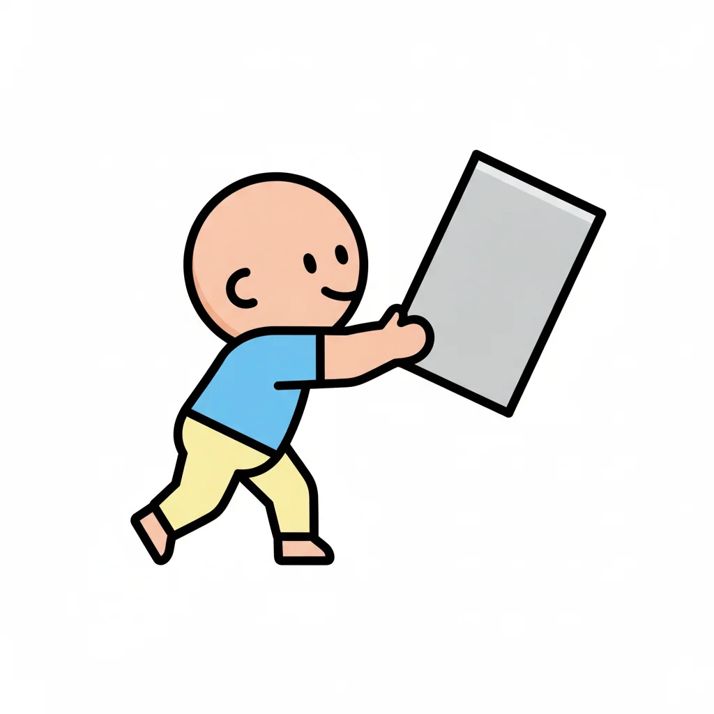 Minimalistische Vektorillustration im flächigen Icon-Stil. Sehr einfache, reduzierte Formen mit klaren, dicken Konturen und wenigen Details. Flächige Farben ohne Verläufe oder Texturen, ruhige Farbpalette, klare Silhouette und gut lesbare, freundliche Figur. Moderne, kindgerechte Lernillustration im Stil einfacher Piktogramme, sauberer Hintergrund und übersichtliche Komposition. Hoher Kontrast, isoliert auf weißem Hintergrund. WICHTIG: KEIN TEXT im Bild. Hintergrund: Rein weiß.