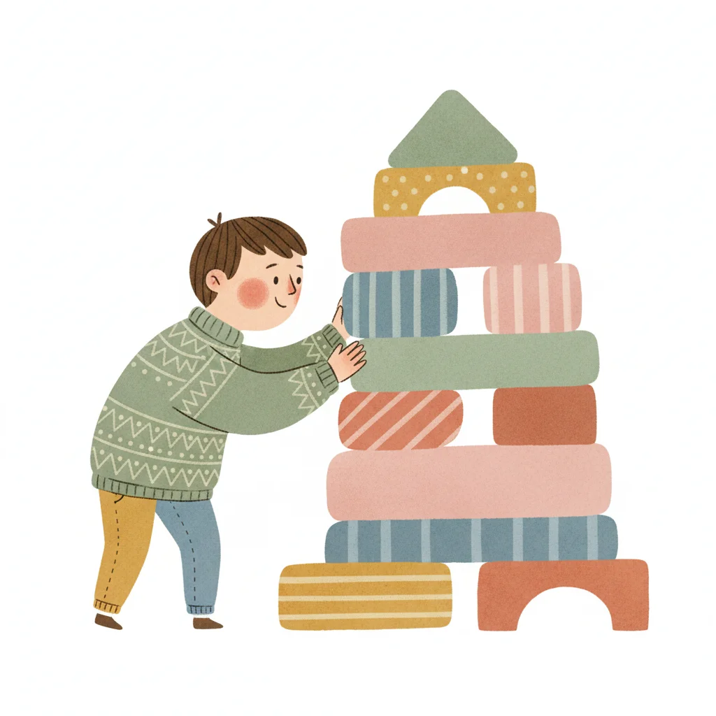 Handgezeichnete Kinderbuchillustration im modernen skandinavisch-nordischen Stil. Minimalistische, freundliche mit einfachen Formen und leicht unregelmäßigen, handgezeichneten Linien. Ruhige, gedeckte Farbpalette, viel freie Fläche, reduzierte Details, sanfte Papier- oder Aquarellstruktur. Warme, ruhige, leicht humorvolle Stimmung, flächige Komposition ohne starke Perspektive, moderner nordischer Illustrationsstil, charmant und zeitlos. Hoher Kontrast, isoliert auf weißem Hintergrund. WICHTIG: KEIN TEXT im Bild. Hintergrund: Rein weiß.
