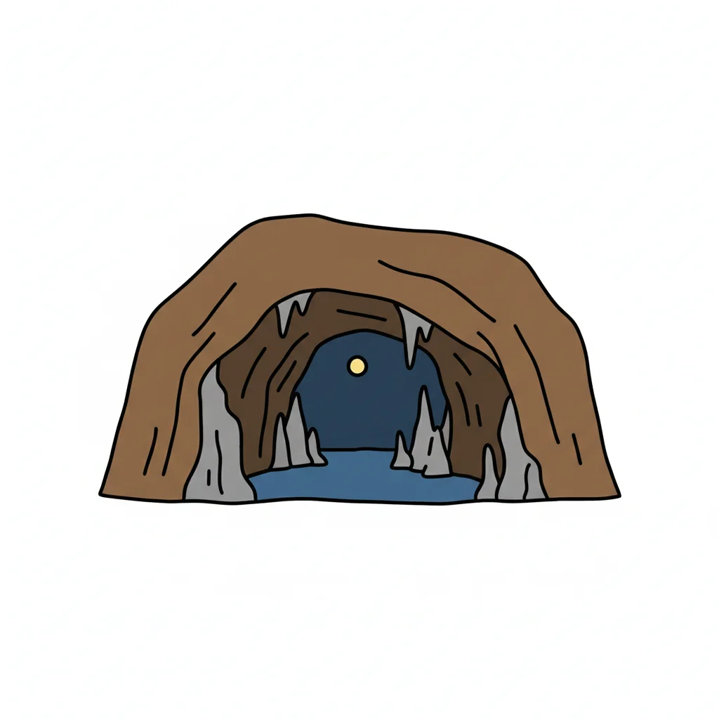 Stilisierte Zeichnung einer Höhlenformation mit herabhängenden Stalaktiten und aufsteigenden Stalagmiten.