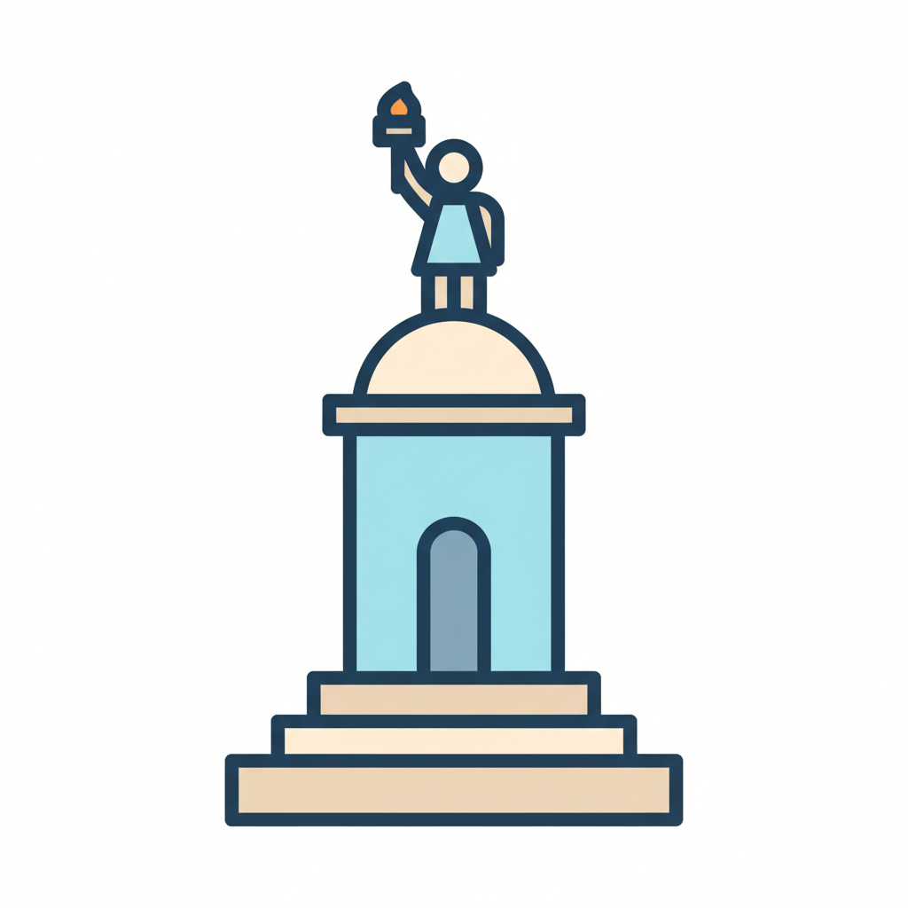 Stilisierte Freiheitsstatue auf einem Sockel mit Fackel in der Hand, als Icon dargestellt.
