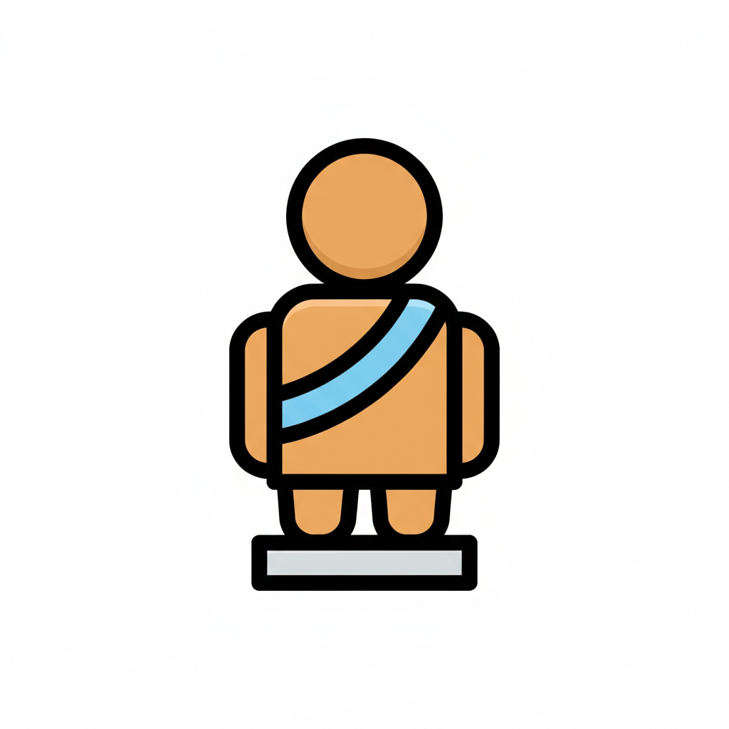 Stilisierte Figur mit blauem Band auf einem Sockel, im Icon-Stil.