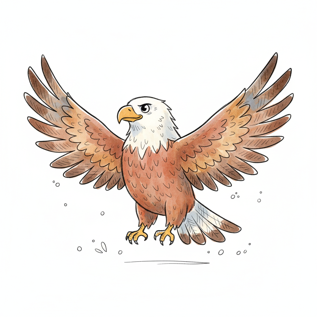 Ein gezeichneter Adler mit ausgebreiteten Flügeln und einem entschlossenen Blick.