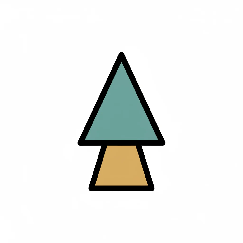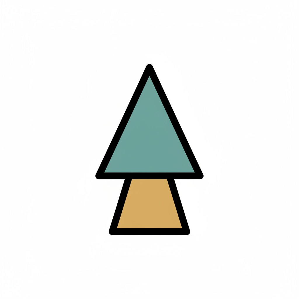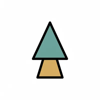 Minimalistisches Baum-Icon mit grünem Dreieck als Krone und braunem Stamm auf weißem Hintergrund.