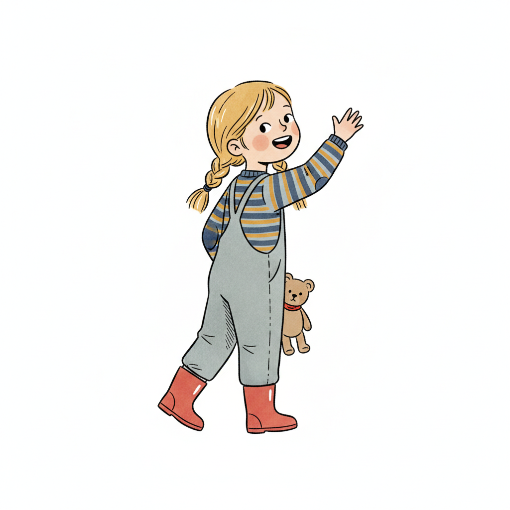 mädchen teddy kinder nordic-bilderbuch-stil tschüss sagen