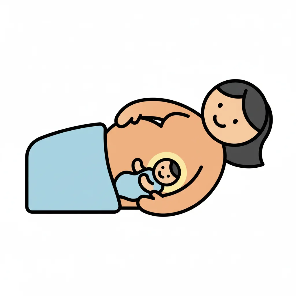 Eine lächelnde Mutter stillt ihr Baby im Liegen. Das Baby ist beim Trinken hervorgehoben.