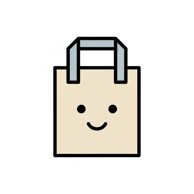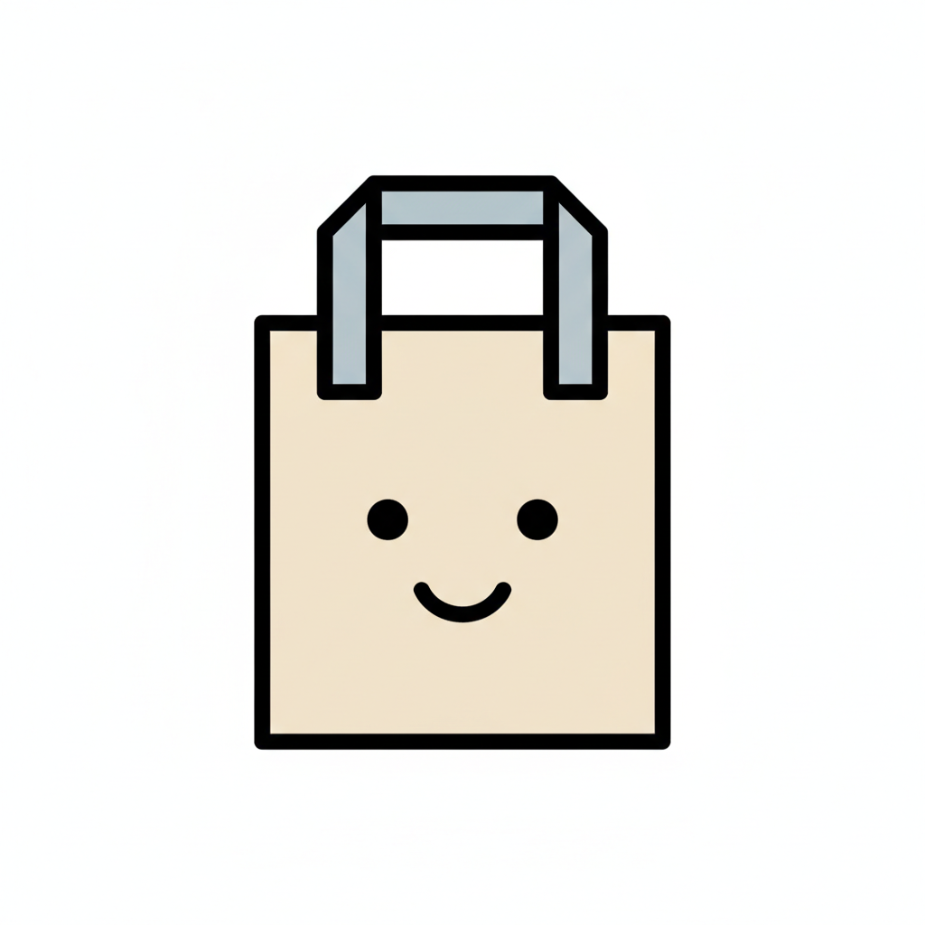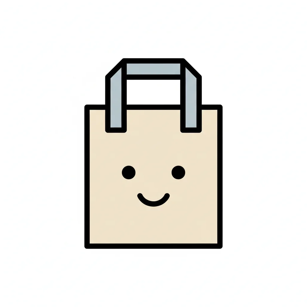 Eine beige Einkaufstasche mit einem lächelnden Gesicht im Cartoon-Stil.