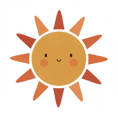 Eine lächelnde Sonne mit einfachen, bunten Strahlen.