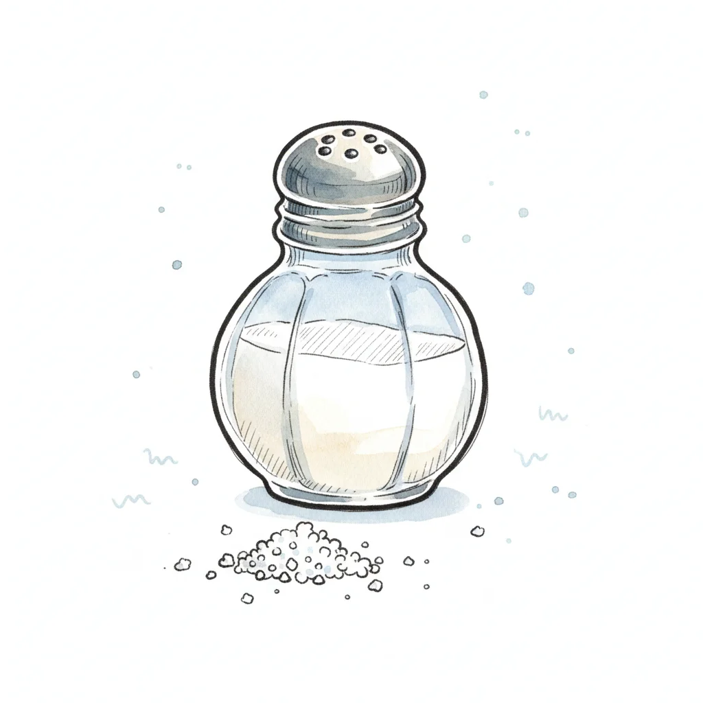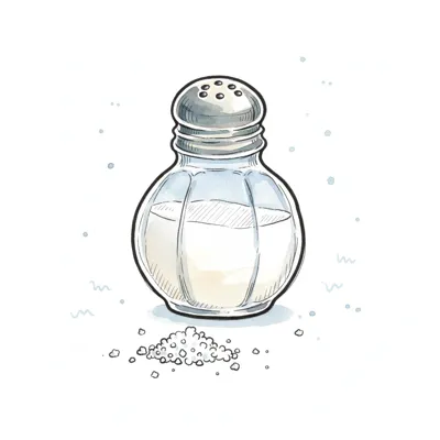 Illustration eines Salzstreuers mit Salz, das unten verschüttet ist.