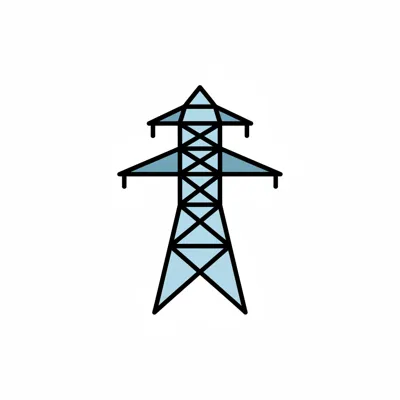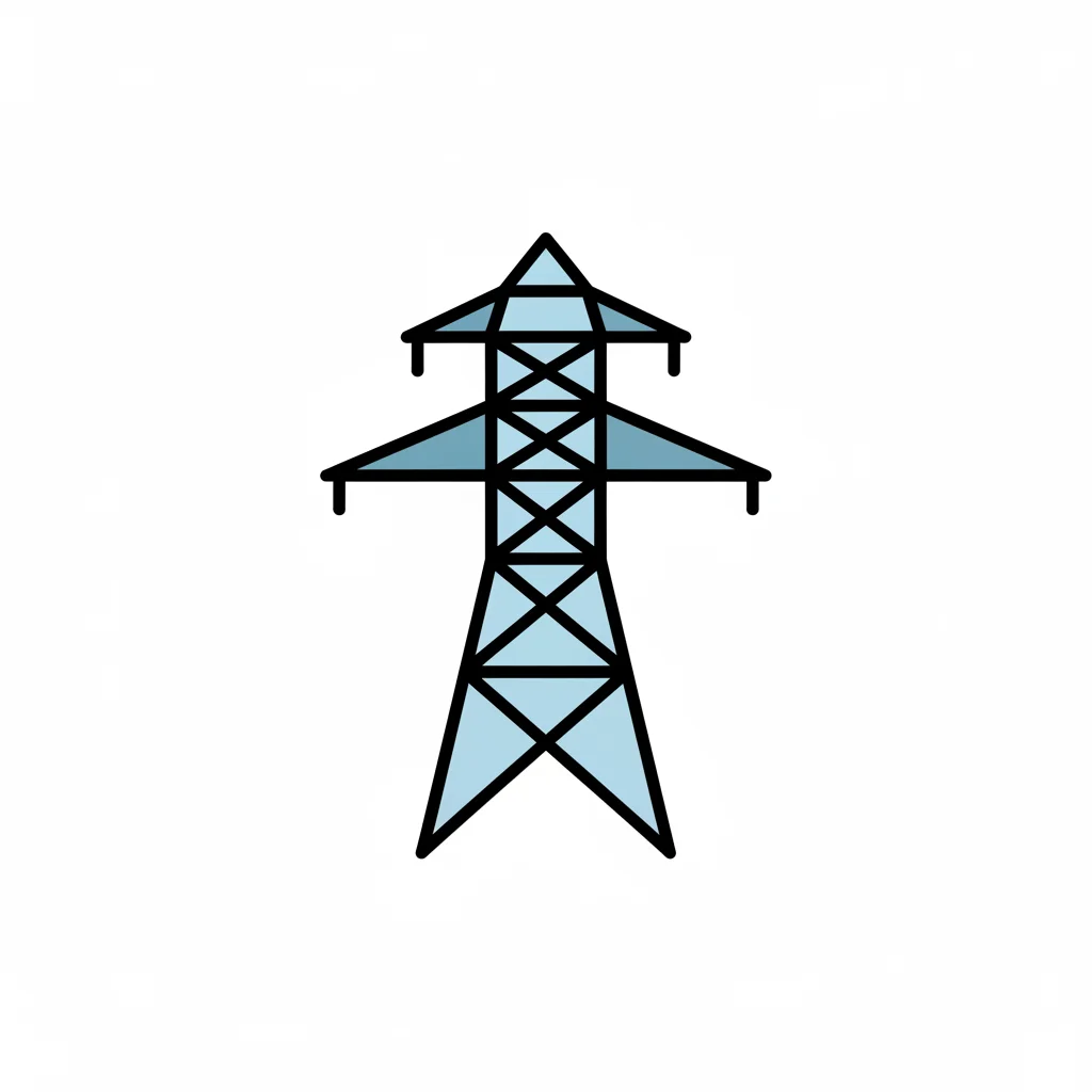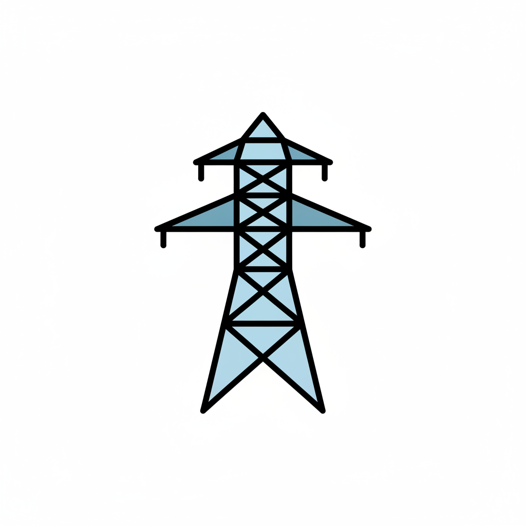 Einfaches Icon eines Strommastes, hellblau gefüllt mit schwarzer Kontur auf weißem Hintergrund.