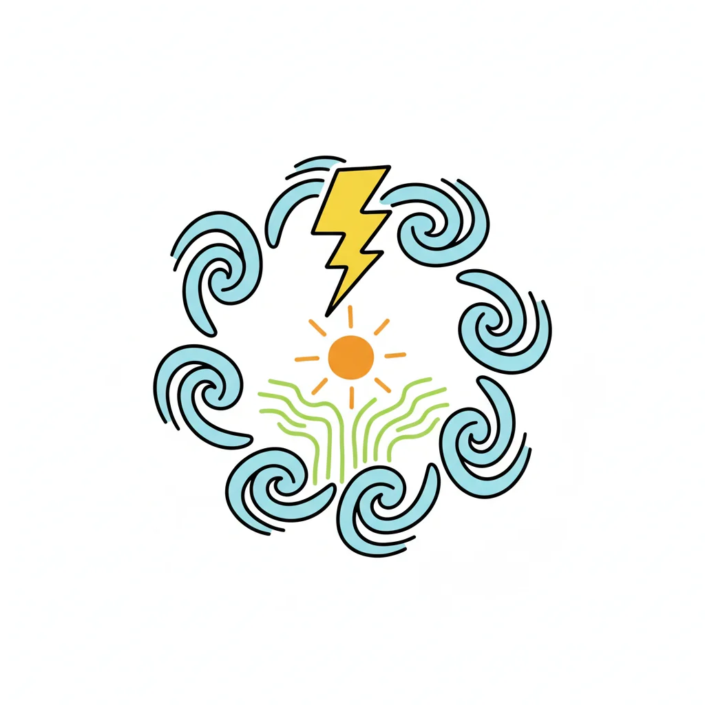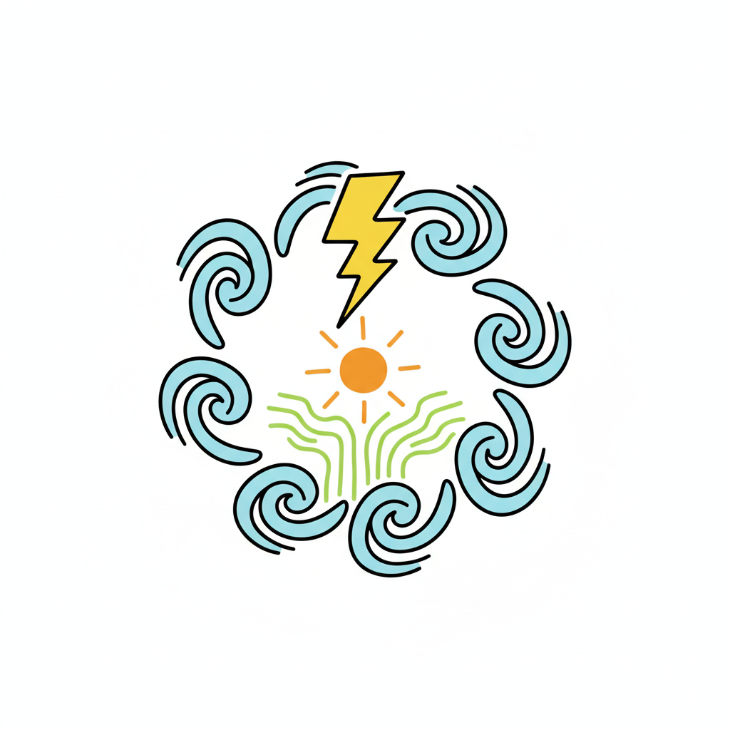 Symbolische Darstellung von Wetterphänomenen in einem kreisförmigen Muster.