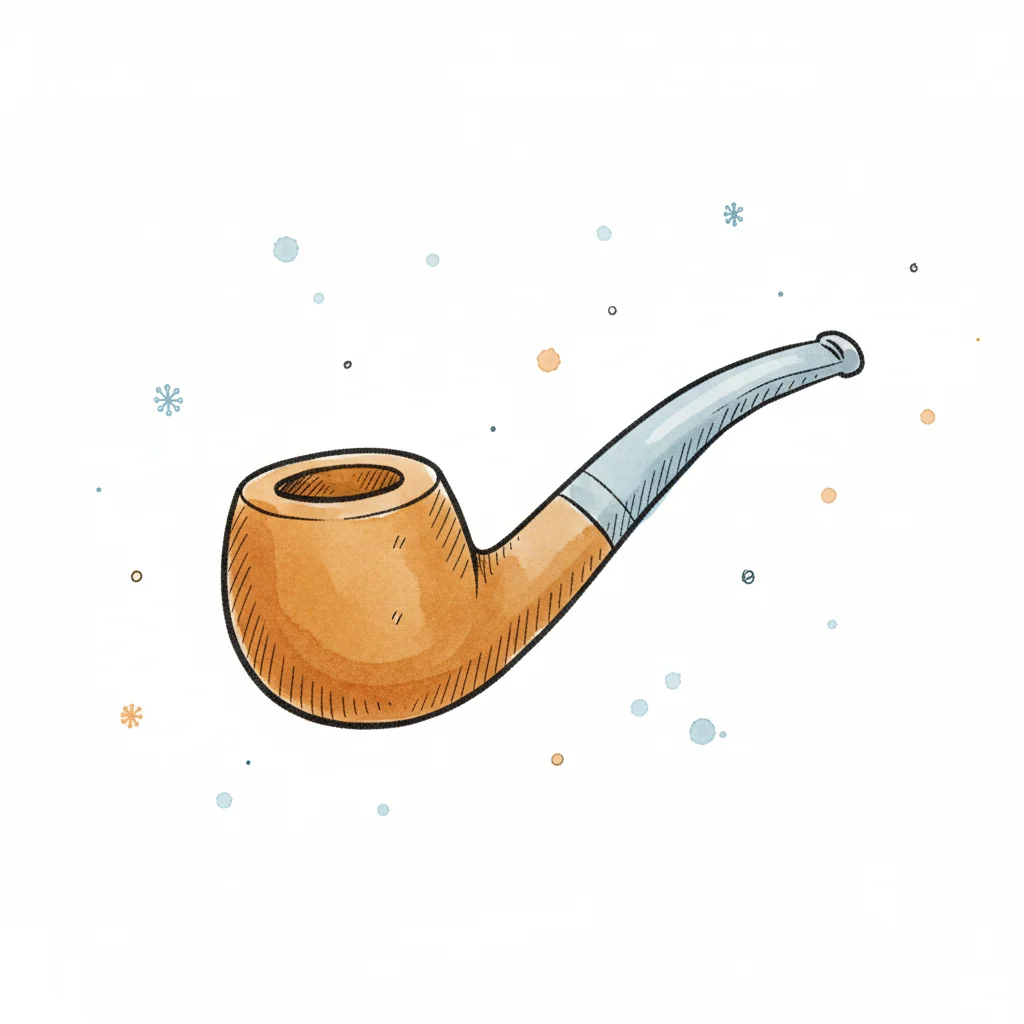 Illustration einer klassischen Tabakpfeife aus Holz mit hellem Mundstück und Farbspritzern.
