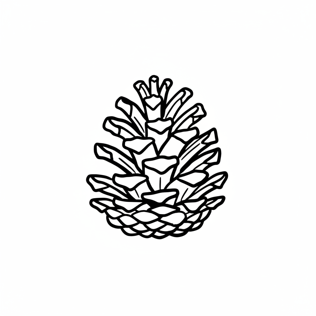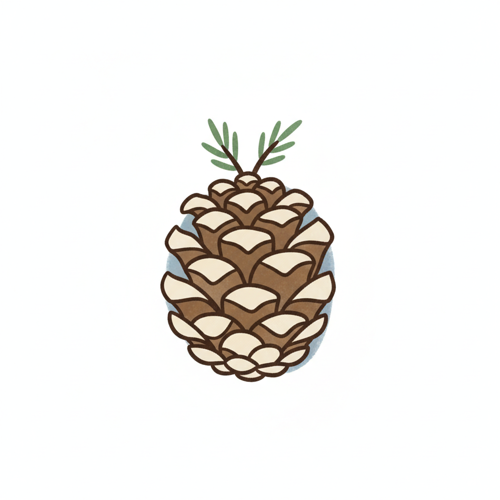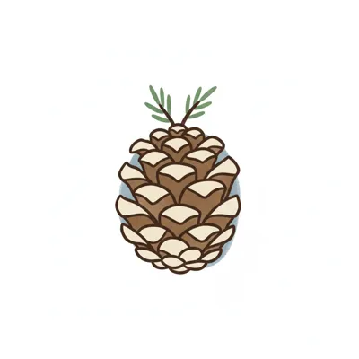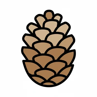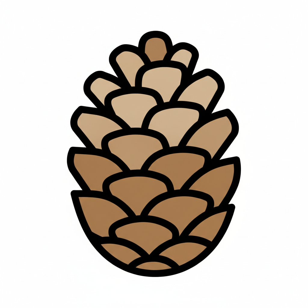 Stilisierte braune Tannenzapfen-Illustration mit schwarzen Umrissen auf weißem Hintergrund.