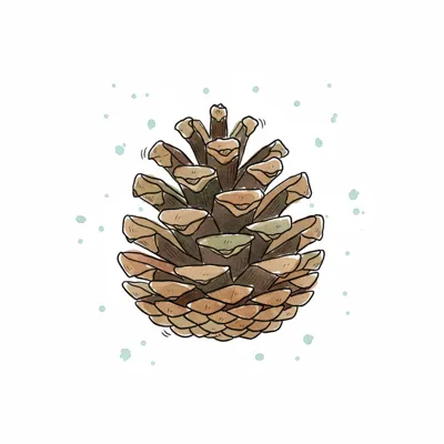 Niedliche Illustration einer Tannenzapfen mit grünen Nadeln und braunen Schuppen auf weißem Grund.