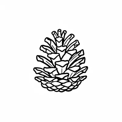 Schwarz-weiße Strichzeichnung eines Tannenzapfens auf weißem Hintergrund.