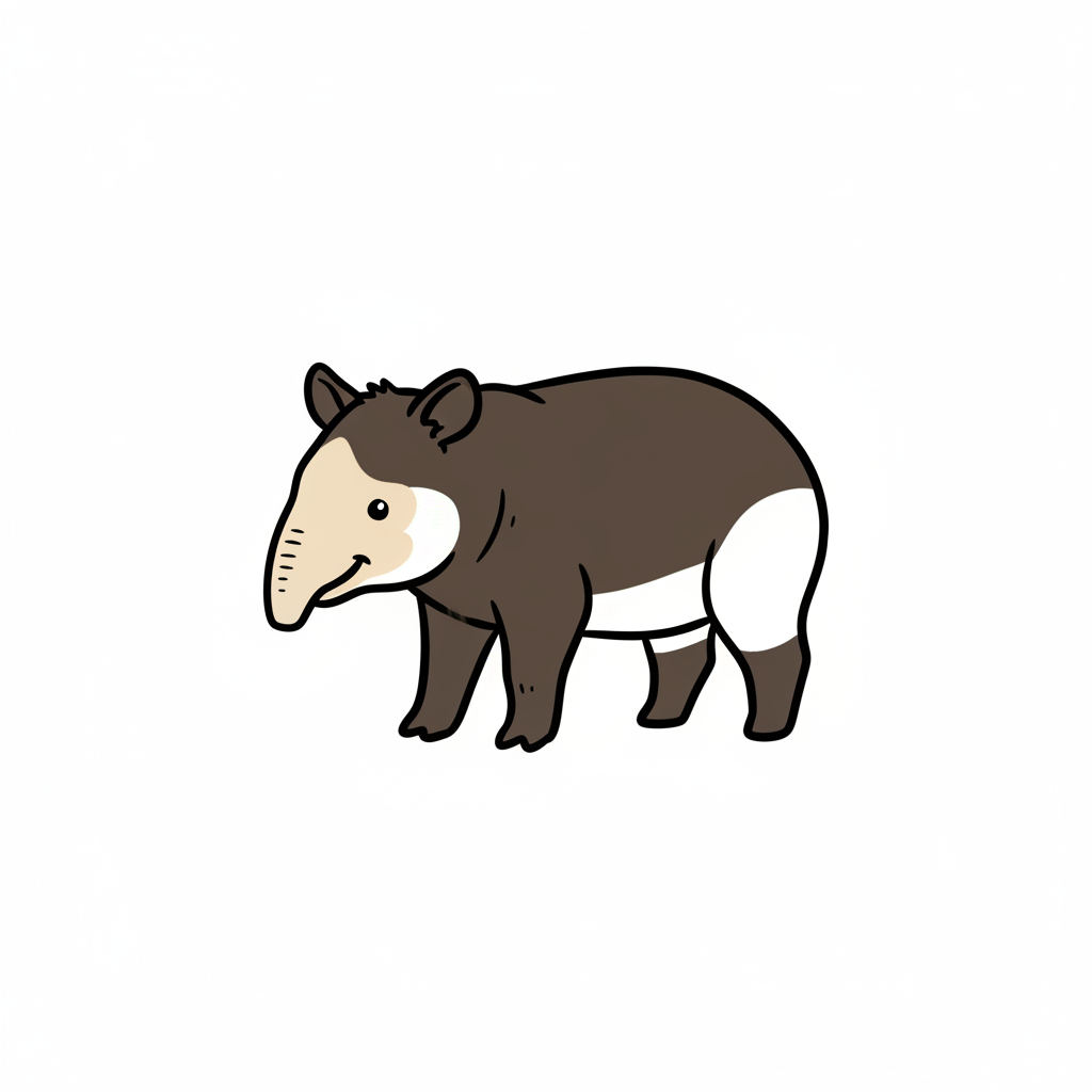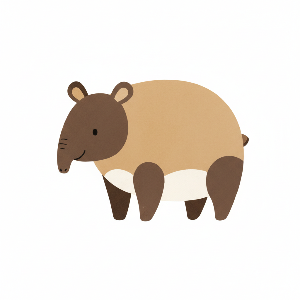 Ein niedlicher, stilisierter Tapir in braun mit einer hellen Unterseite.