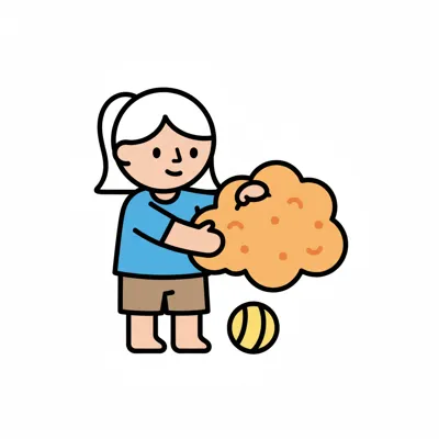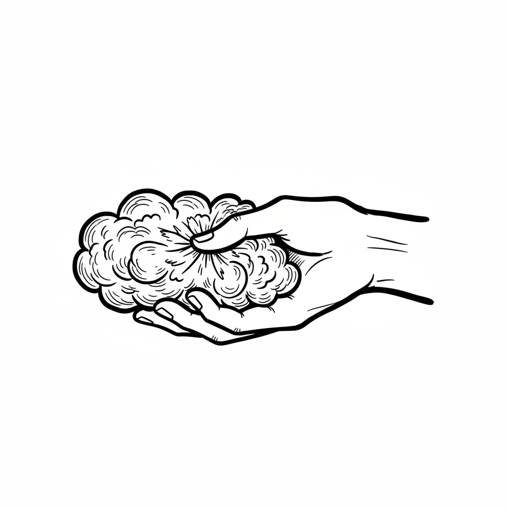 Skizze einer Hand, die ein flauschiges, wolkenartiges Objekt hält.