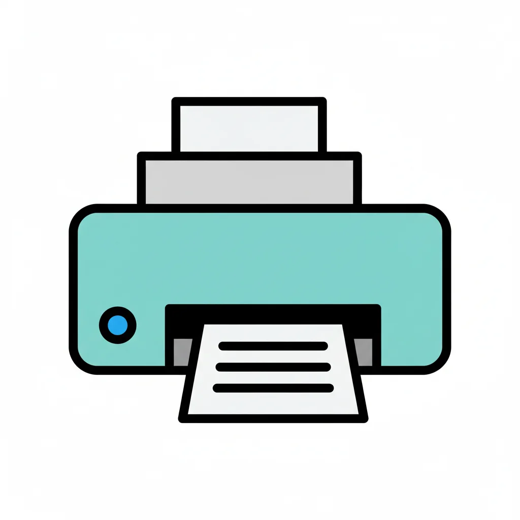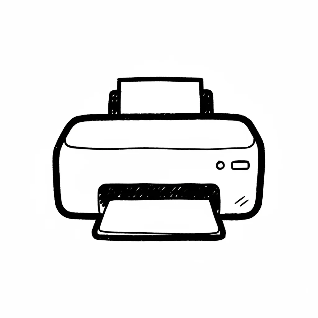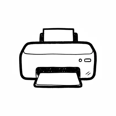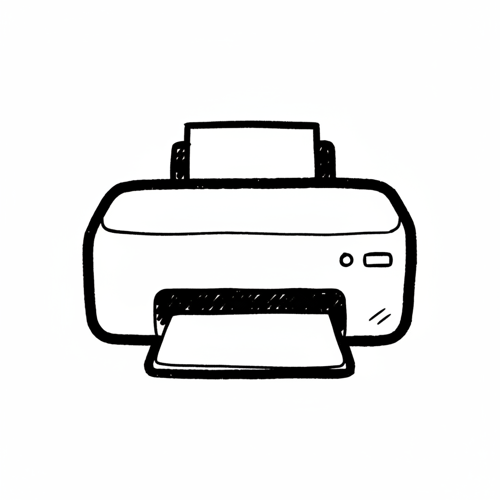 Ein einfacher, skizzenhafter Drucker mit einem Ausdruck.