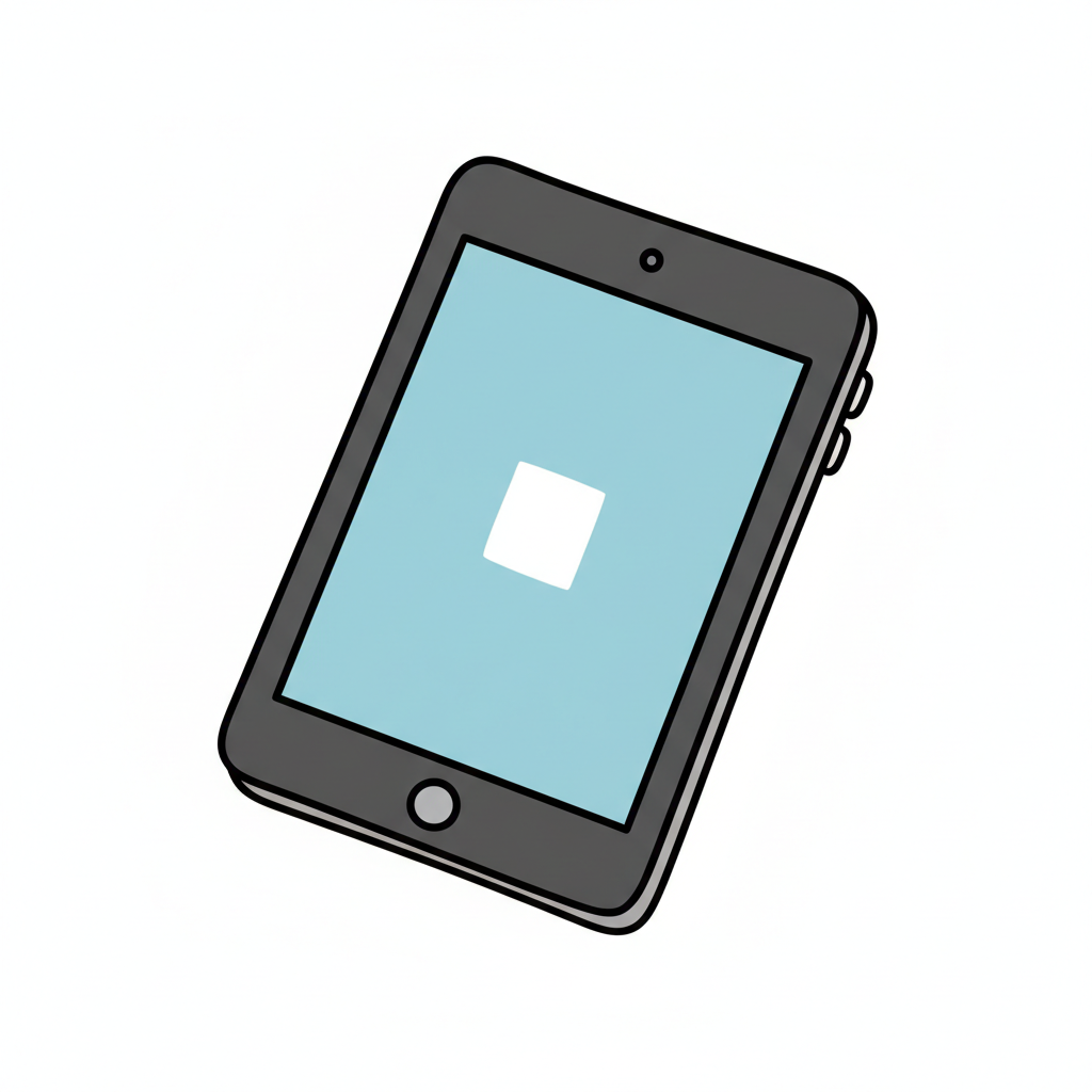 Ein minimalistisches Bild eines Tablets mit einem hellblauen Bildschirm.