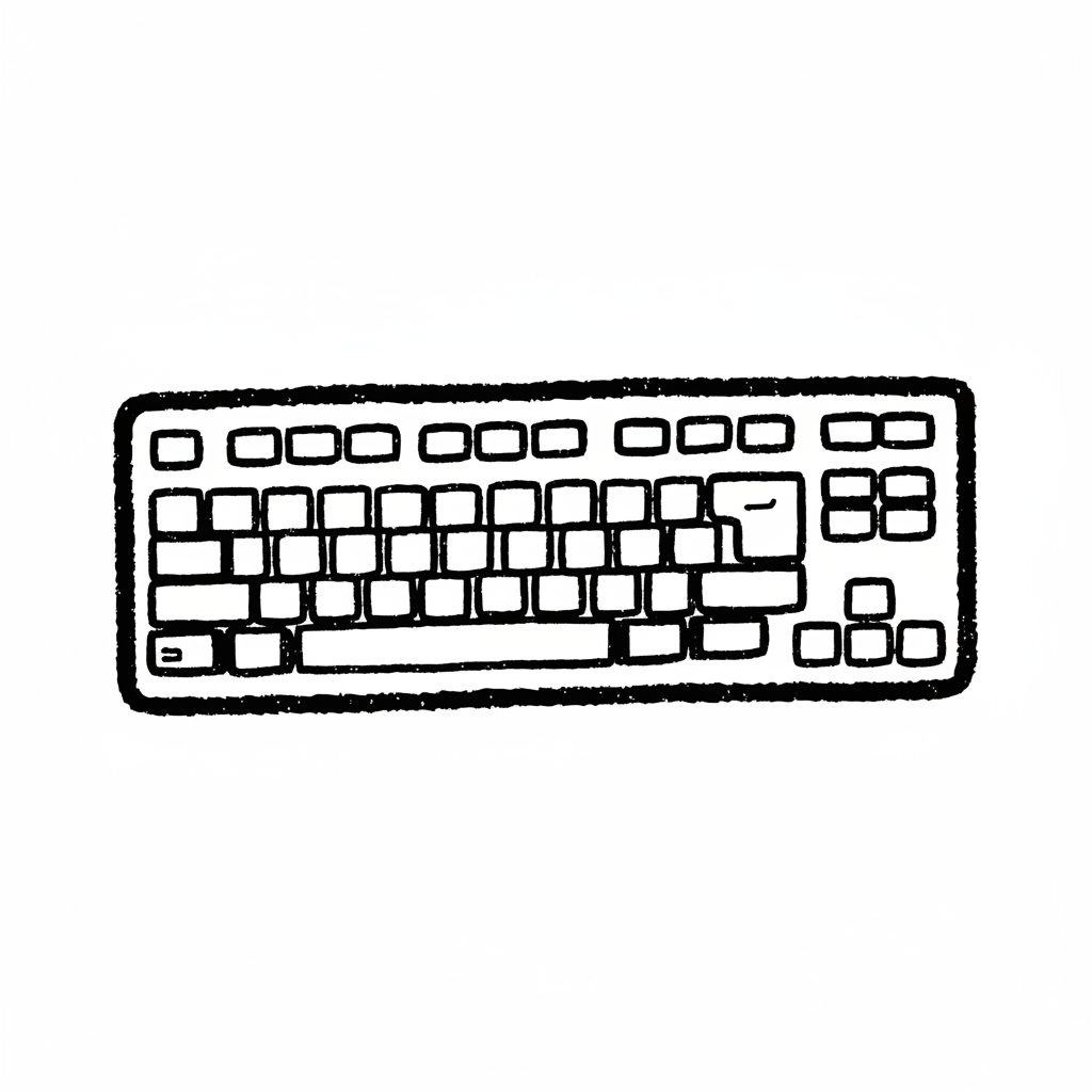 Ein skizzierte Computertastatur in schlichtem Design.