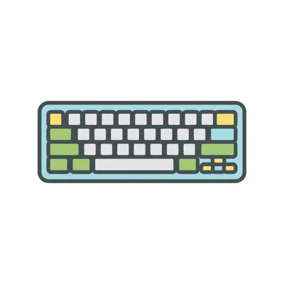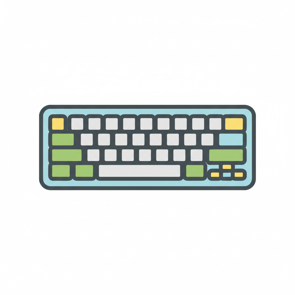 Stylisierte Computer-Tastatur mit bunten Tasten.